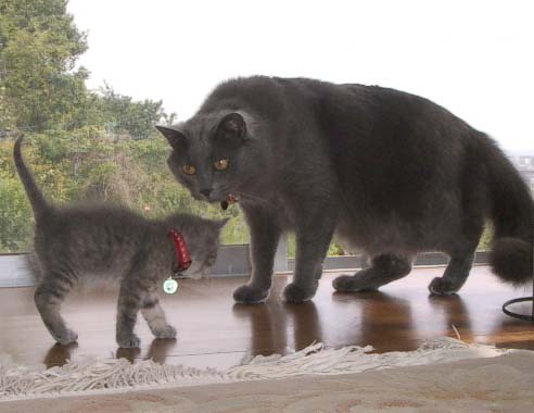 彼女は人間様のトイレで用を足すのでトイレのドアには出入りの穴を開けてあるのだが、 私がトイレに入れば、顔をのぞかせて満足顔で私をちらっと見て、 ドアの外で待っている。 また、自分が用を足した後は、ドアの前で「水を流してよぉ」とあぉんあぉんと鳴き、 水を流してやるとご褒美のおやつをねだる。
