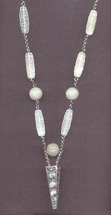 珍しく昨夜は寝つきが悪かった。 普段は、 おふとんに入ったら、五分経たずとも熟睡。 隣でいびきをかいていようが、 気がついたら朝という毎日で、夢さえたま~に「見たよなぁ~」って思うだけで、 内容は全く覚えていない。 その私が、三時を過ぎても寝付けなかった。 と言っても、 夫が7時過ぎに東京から戻ってきたのだが、赤坂プリンスホテルのケーキをたくさんお土産に頂いて帰ってきたので、 友人を呼び出して、 ケーキとウイスキーで軽く飲んだ。 帰ったのが12時半、お風呂に入って床についたのが1時半。 こんな夜は、いろんな事が脈絡もなく思い出されたり、考えてたり、ふと思いついたり。 つらいような、たのしいような・・・ そうこうしながら浅い眠りについていたのか、気が付いたらさすがに声は出していなかったけれど、 お腹を震わせて笑っていた。 なのに、笑っていることに気が付いて目覚めた瞬間でさえ、 どんな夢を見ていたのか思い浮かばないのだ(-_-) さすがに、我ながらあきれた。 それなのに、なんで笑ってたのかなぁって考えつつも、 また深い眠りについてしまったのです(^^;) 2006.9.19 (火) パソコンを窓辺においている。 今、さくさくさくと外で音がし、 猫の寿珠があっちの窓、こっちの 窓とかけずり回って外を警戒している。 イノシシだ。 80㎝ばかりの子供を二頭連れた親子を最近見たので、 その一匹かもしれない。 一週間ほど前には、 フクロウがほうっほうっと鳴いていた。 たまにキツツキのコンコンコンコンッっていう音も聞こえる。 ひと月ほどまえには、 この山では初めて、 おおきな角を持った鹿に出会った。 いったい どれほどの種類の動物が住んでいるのだろう。 どんな山奥に住んでいるのだろうとお思いでしょう。 でも、 赤穂駅まで歩いても20分とかから ないのですよ(^_^;) ペンダントの部分は箱もの。 サイドは透かし模様になっています。