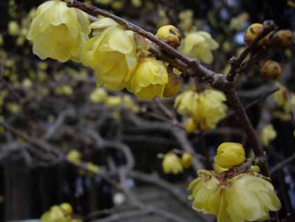 以前にも一度来たことのある秩父の長瀞駅から程近い宝登山(ほどさんと呼びます)に登った。 というか、図らずも登ることになってしまった。 この山は、蝋梅で有名な山。 ちょうど満開のこの時期に来たら、ロープウェイに乗るのに1時間以上待つというのだ。 それなら一時間で歩いて上がれるからと、多くの人が歩いているので、 登山道を歩いた。 結構な急坂が続き、くたびれた所にこれまた急な登り。 ええっっ;;;てのけぞりつつ仕方なく歩いていると、もう頂上だった。 目の前に開けたのは黄色い世界となんともいえないい良い香り。 水仙に似たすっきりと甘い香りだ。思いのほか広く、一時間歩いた甲斐がある眺めだ。 素芯ろうばいは、よく見かけますし、 満月ろうばいも近頃ちょくちょく見ます。 しかし和ろうばいは初めて。 備前の花器にでも挿せば、風情が引き立ちそうな、 素朴だけれど、品の良い花でした。 私 夫 鱧のおとしに海老の唐揚げと石持ち(子持ちでも4センチ程の魚で、赤穂以外では見たことがないんだけれど。 この辺りでは、夏、ビールには枝豆より石持ちです!)の唐揚げ、鮎はひちりんで焼きました。 茄子を海老と炊いて、庭から取ってきたニラは夫が静岡で買ってきてくれた桜海老とで煮びたしに.。 縮緬じゃこときゅうりの酢の物、 他に何作ったっけ??? 忘れちゃいました。