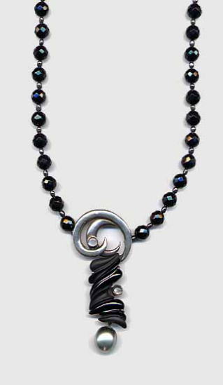 最近、 作った真珠三兄弟。 左がアコヤの10mm極上の花珠。 これは、何年も前に自分の為に作ろうと購入しながら、 ずっと引き出しに入った儘になっていた珠。 ようやく作りました。 中央は白の南洋真珠11mm。 右がアコヤの7mmナチュラル・ブルーといって、 化学的に着色してなくて、 天然の状態で 青いのです。 この珠は、小さいけれど、 照りが良く、特に青さが濃い、上質のナチュラル・ブルー。 銀座和光への出品要項には、 青い真珠を使う場合には、 ナチュラルであることが指定されて います。 普通の宝石屋さんでは、 あまり見かけませんがね。 アコヤ真珠は密度の濃い硬質な照りがあります。 画像で見ても違いが分かるでしょう。 それに、どちらも質の高い玉なので、 黄ばみがなく実に美しいです。 南洋真珠は、どちらかというと少しぼんやりとした印象ですが、 一般的にこれぐらいの大きさでもお手頃ですし、 これも普通のランクの珠です。 こうして較べるとアコヤの光り方とは違いますが、 これはこれで、 南洋のぼってりとした重量感には、 独自の美しさがあります。 リングの部分は、 青いハードWAXで作り、 鋳造したものです。 三本とも単なる月形甲丸ではなく、 上部は立体的に擦り出しています。 その上に0.4mmのsilver950の○線をねじった縄線を 貼り付けて、 唐草模様にしています。 それだけでは、 少し地味なので、 ポイントにK18の玉や線をあしらってみました。