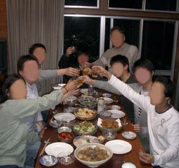 夫の教え子たちが集まって餃子パーティー。 2年前に卒業した留学生が、中国に戻るので、送別会だ。 久しぶりの餃子作り。 院生のお母さんが中国から来ていたので参加して下さり、中身がいつもよりさらに本格的。 今日も、バイトで早く帰った人、遅く来た人、合わせると16名の盛大なパーティーで、狭いうちのキッチンはぎゅうぎゅう詰め。でも、 いつも、何かって言うと、こうやって在校生、OBがすぐに集まるって、毎回のことながらしあわせなことだね。