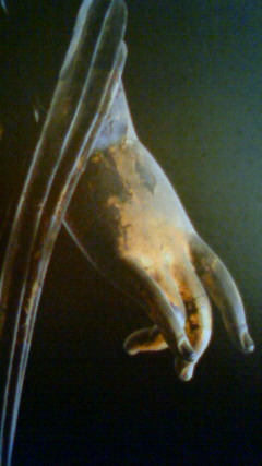 14日の夜、 法隆寺の金堂で行われる「吉祥悔過」という法要を拝見した。 幸運なことに、たった三十三名のひとりとして。 八日から始まり、七日間続く「吉祥悔過」の法要の最終日、結願の日だ。 朝から降っていた雨もようやく止み始めた。 日が暮れた薄明かりの下、社務所の方らしき人の照らす灯りに連れられて金堂に入る。平素は金網とビニールを通してしか拝見できない釈迦三尊像他多数の仏様が、何の妨げもなく、手の届きそうなところで、お灯明に照らされ、その空間はまるで天国とはこうであろうと思わせる荘厳な雰囲気をたたえていた。 十二名の僧が、供物を捧げ、お経を上げる。 座ったまま唱えたり、堂内を巡りながら唱えたり。 独唱あり、唱和あり、輪唱あり。 お声明というのは、この様に仏に聴いていただくものなのね。 そうして、最後は我々から見えないように白い幕を張り巡らせての秘儀。 加持杖で僧たちが床や壁を叩き、 法螺貝を吹きながら堂内を巡って邪を祓っている様子。 幕が取り払われた後、 願掛けに用いた牛の肝を紙で包んだものを各々額に押してもらい、お札をいただく。 揃って隣の聖徳太子を祀っている聖霊院の前まで歩き、 中にいらっしゃる聖徳太子に結願の報告のためのお経を唱え、法要は終わった。 そろそろと連れられるままに歩いていくと、 門がするすると開き、 我々は現実の世界に放り出された。 二時間あまり、荘厳な空気に包まれていた我々は、 放心したようであり、 ちょっとすごい体験をしちゃったぁと興奮ぎみでもあり。 そんなすばらしい時に身をおけたことに感謝している。