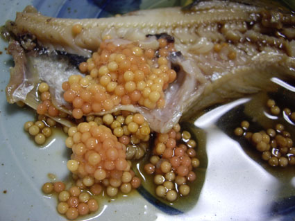 一粒一粒が糸を引くほどの粘りで繋がっていて、 プチプチと弾ける卵はイクラの半分ほどもある大きさ。魚卵にしては大きいでしょう。