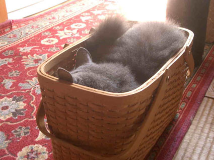 寿珠は、どういう訳か私のバスケットが気に入ったようで、毎回「そんな無理して狭いところに入らんでもいいのにぃっ」て言ってしまうほど、窮屈そうに入っています。