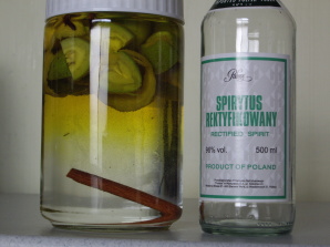 何軒もの店を回って97パーセントのウォッカを手に入れ、同量の水と氷砂糖を加え、すべて溶かし、胡桃を半分に切って入れるだけ。