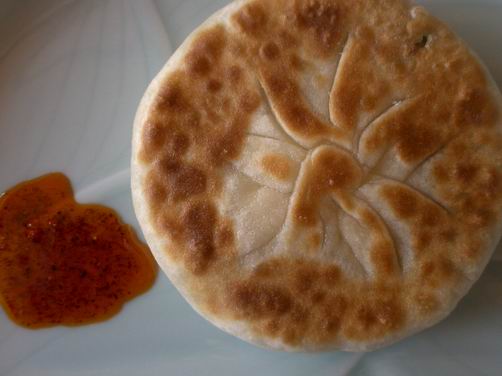 随分とお料理のページを更新していないので、 最近のお気に入りを一品紹介しましょう。 モンゴル人直伝のシャオピンです。 焼餅と書くのかと聞いたら、 初めは「そうそう」といいながら、 「本当の字はたぶん日本人は知らないね」だって。 その時はいろんな料理を作ってもらいながらだったので、 また次回会ったらちゃんと聞いておきます。 ともかく 音はカタカナで書くとシャオピン。(実は何度まねて発音しても違うと言われ断念した次第で(>_<)) 餃子の皮に餃子の具を入れるまでは同じ。 包み方が違うの。 豚まんみたいに丸く包んでしっかりと閉じ、 そのあと平たくのばして厚さ1センチ弱にし、 フライパンでこんがりきつね色に両面を焼いたもの。 では、 皮の作り方。 強力粉と薄力粉(モンゴル人の彼曰くある粉でいいって。 その日の気分で彼らも変えるらしい。)を半々で400グラムをボールに入れ、 まんなかをへこませておく。 そこに熱湯480ccを注ぎ、 箸で素早く混ぜる。 粉がすべて熱湯と混ざるまでしっかり混ぜると、 全体がバラバラになる。 そこでようやく手でかためてこね、 巻き寿司のような棒状にまとめ、 室温で30分寝かす。 あとは包丁で1センチぐらいの厚さに切って、 綿棒で薄くのばし、 上の要領で包むのです。 その日の具は羊の肉、 ネギ、にら、だったのですが、 白菜などの野菜だけでもいいし、 肉の変わりにゆで卵でもいいって。 その日の他の料理との取り合わせとかで変えるらしいです。 餃子と同じ材料なんだけれど、 香ばしさが違うというか、 皮の食べ応えがあるというか・・・ それに冷凍室でもかさばらない上、 出してそのまま焼いてもきれいに焼けるのがうれしい(*^_^*) ついでにラー油。 これはウイグル人に教えて頂いたのですが、 まず、 一味唐辛子の粉を一袋ぜ~んぶと2、3片のにんにくをスライスしたものを小振りなホーロー容器に入れ、 かるく熱したごま油を注ぐだけ。 すぐでもおいしいけれど、 日が経つに連れて、 なじんで味わいが出てきますよ~~ このラー油にお醤油とお酢につけて焼餅を食べると、何枚も食べちゃいます(*^_^*) ウイグルの揚げパンみたなのもおいしいので、 また紹介しますね(^o^)/~ 焼餅(直径10センチくらい) と左がラー油。 なんだか画像がもう一つで美味しくなさそうだけれど、 みんなに好評なのです(^_^;)